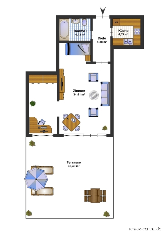 - Große Dachterrasse mit Dusche und WC zur Mitnutzung