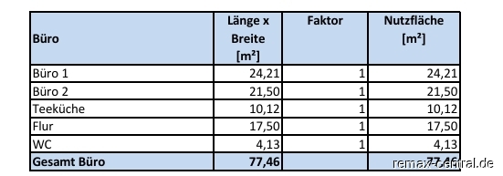 - Nutzfläche ca. 84,5 m² im Hochparterre- 2 Büroräume mit je 21,50 m² und 24,21 m²