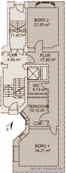 - Bürofläche, ca. 84,5 m² im Hochparterre- Zur Auswahl: 2 Büroräume mit 21,50 m² oder 24,21 m²