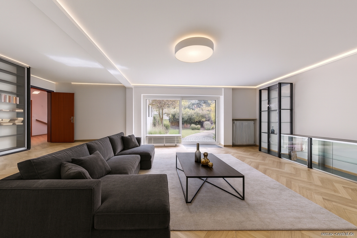 Dieser charmante Bungalow in Ottobrunn vereint großzügiges, ebenerdiges Wohnen mit einem ausgebauten Untergeschoss und überzeugt durch seinen besonderen Charakter. Auf rund 134 m² Wohnfläche erwarten Sie insgesamt vier Zimmer sowie ein lichtdurchflutetes Wohnzimmer.Der Hauptwohnbereich präsentiert sich offen und freundlich. Vom Wohnzimmer aus gelangen Sie direkt in den gepflegten Garten, der viel Platz für Erholung und Freizeit bietet. Ein besonderes Highlight sind die raumhohen Bücherregale und der Split-Level-Charakter des Wohnzimmers – Elemente, die für eine einzigartige Raumwirkung und eine behagliche Atmosphäre sorgen.