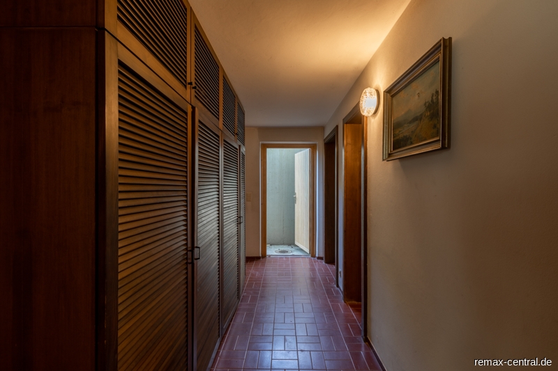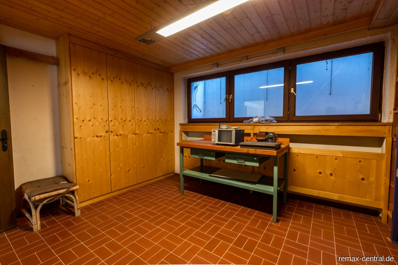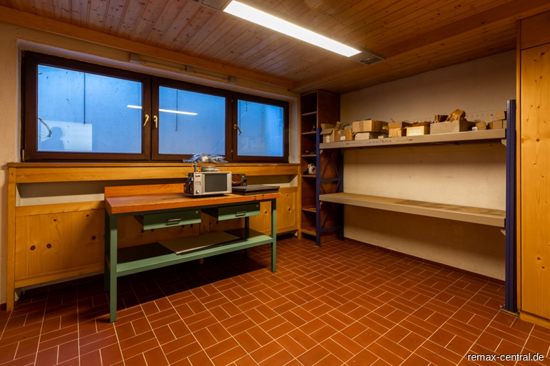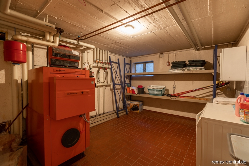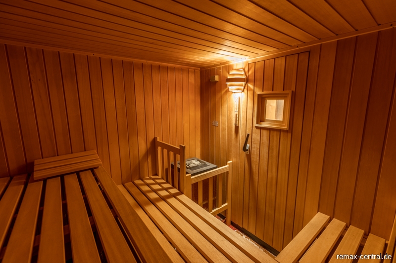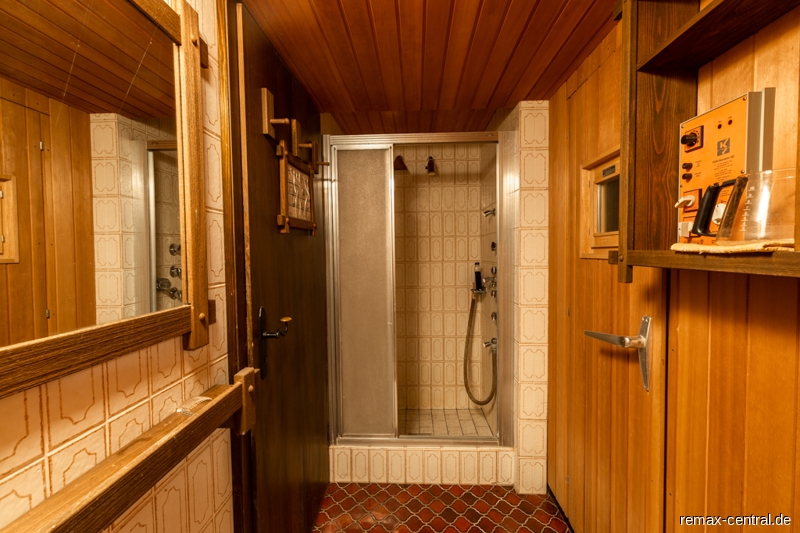 Der Keller verfügt nicht nur über einen großen Hobbyraum mit Tageslicht, sondern noch über zwei weitere helle Räume und eine Sauna mit Dusche.