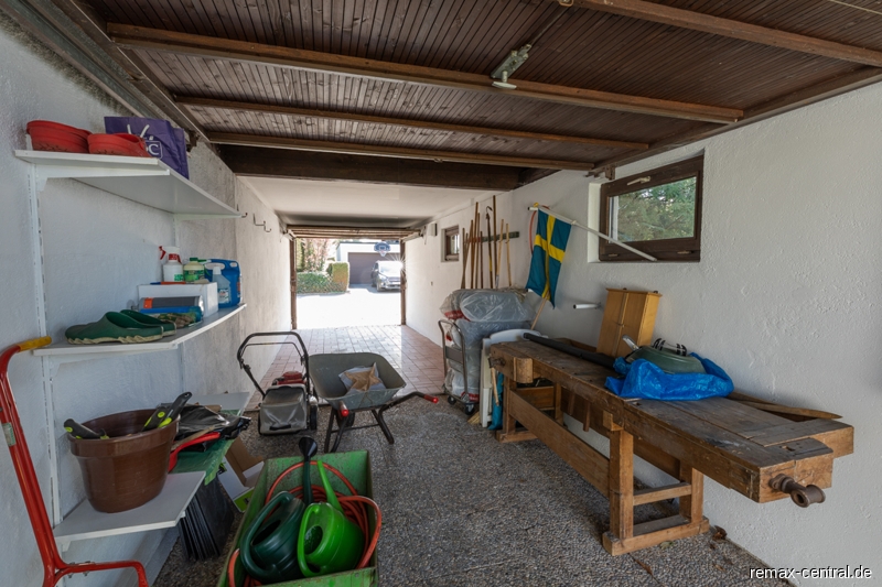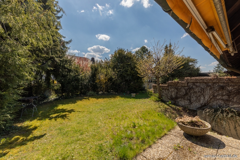 Der Garten des 491,50 m² großen Grundstücks ist pflegeleicht angelegt und neben einem Stellplatz für Fahrräder ist auch eine eigene Garage vorhanden.