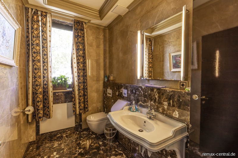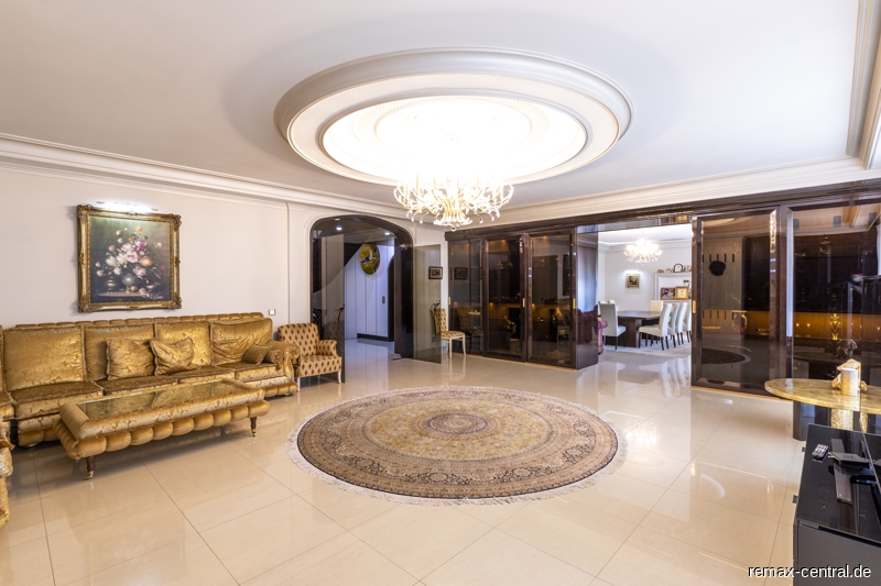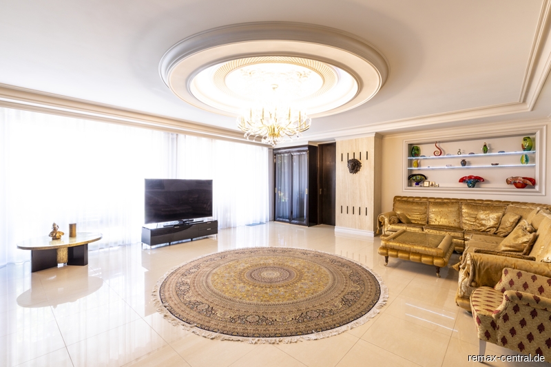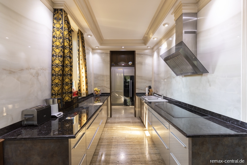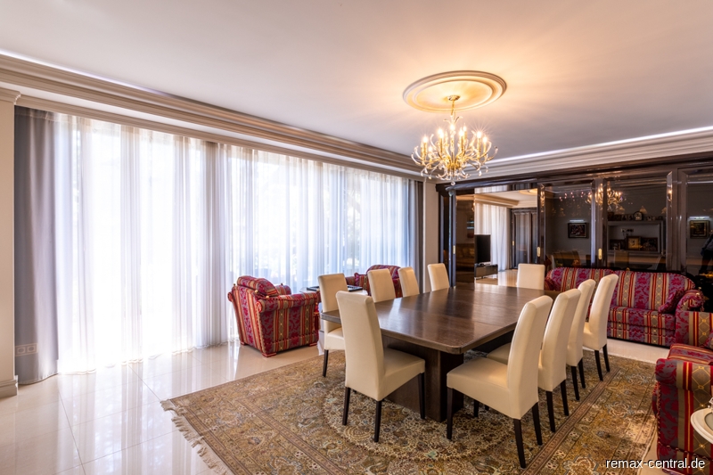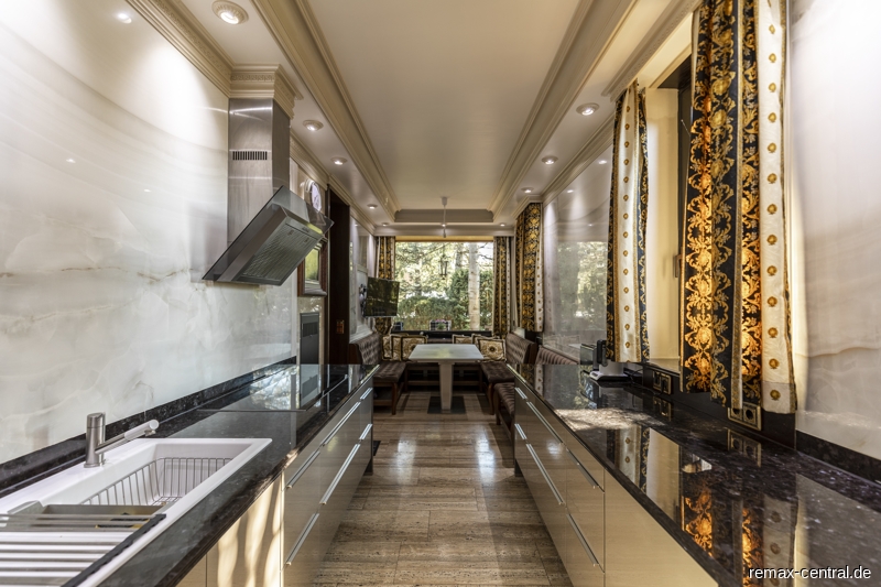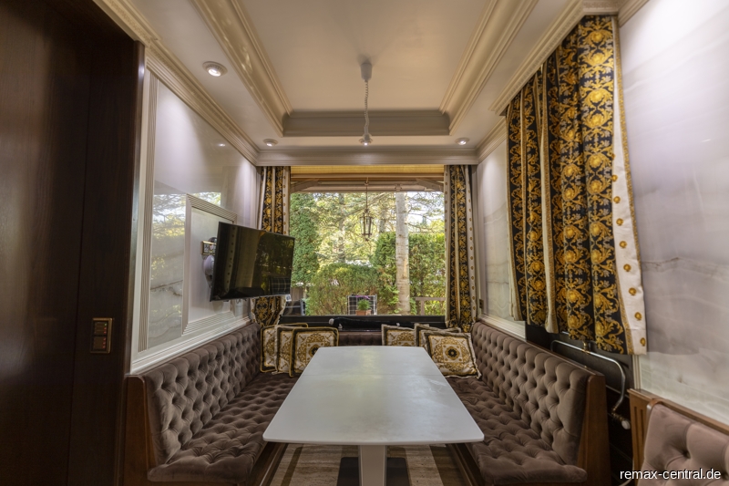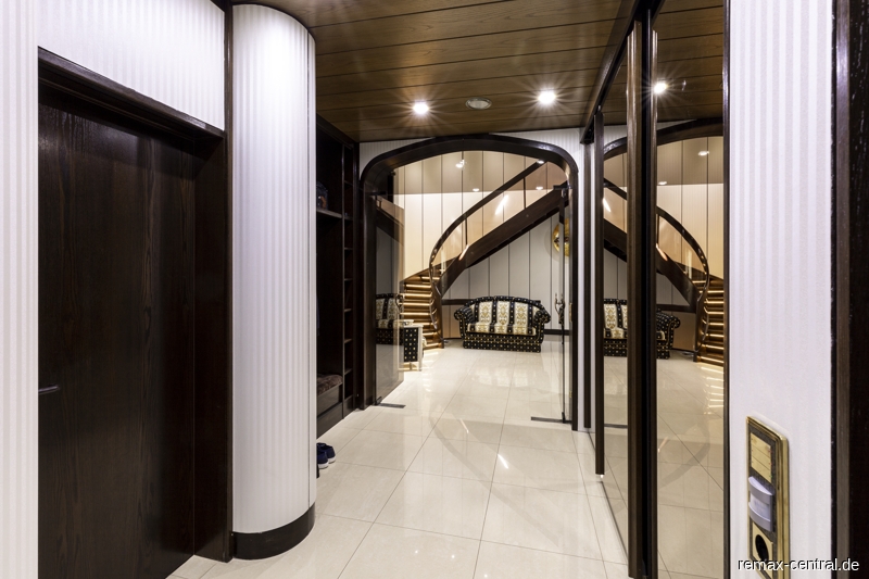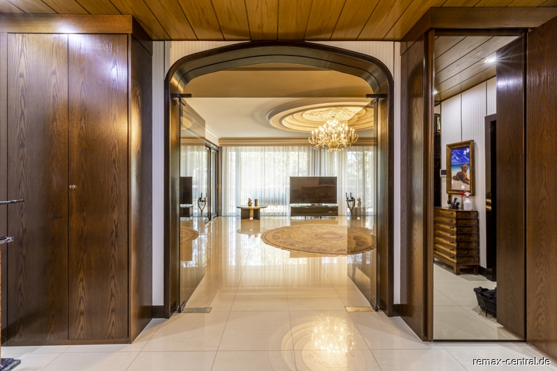 Rund 516 qm reine Wohnfläche und zusätzliche 302 qm Nutzfläche - verteilt auf drei Wohnebenen - bieten einen exklusiven Wohnkomfort im durchgängigen Stil. Die luxuriösen Ausstattungen ziehen sich vom Untergeschoss über das Erdgeschoss bis hin zum Dachgeschoss.