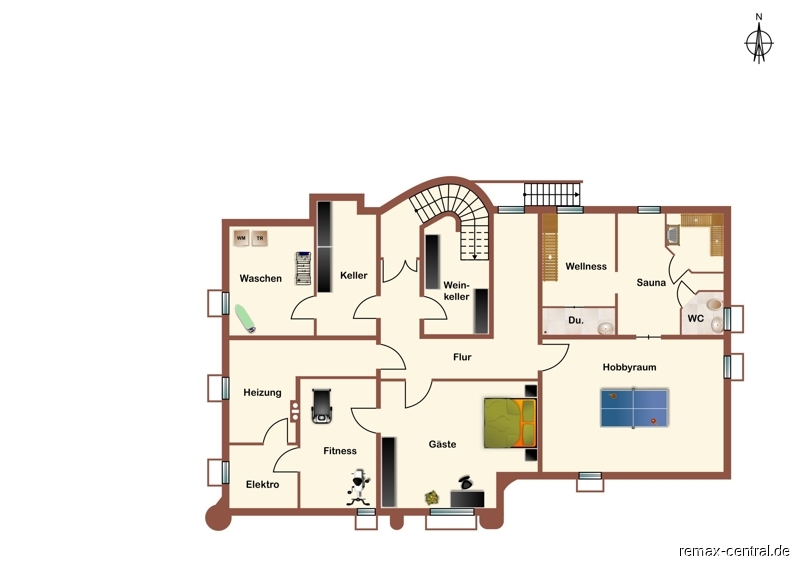 Für Überraschung und Unterhaltung sorgen dagegen das Spiel- und Billardzimmer; für sportliche Aktivitäten der Fitnessraum.