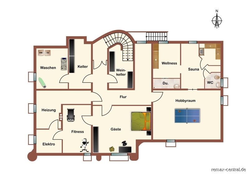 Fun and entertainment, on the other hand, will be found in the games and billiard room. An additional fitness room offers plenty of space for sportive activities.