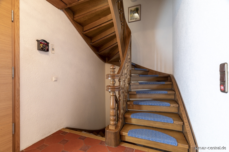 - Einbauküche aus Massivholz- Bodenbelag aus Keramikfliesen im Eingangsbereich, Treppenhaus und der offenem Wohnküche