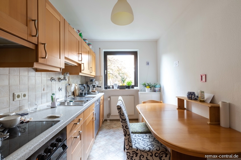 Die Küche verfügt über eine neuwertige Einbauküche mit einem Essplatz, die gegen eine Ablöse übernommen werden kann.