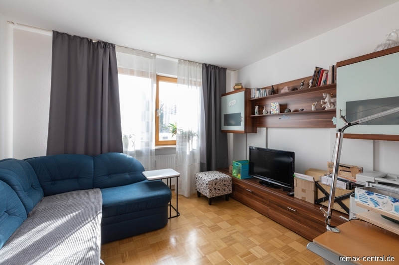 Vom großzügigen hellen Wohnzimmer aus kann man auf dem Südbalkon den Ausblick in Weite der Nachbarschaft genießen.