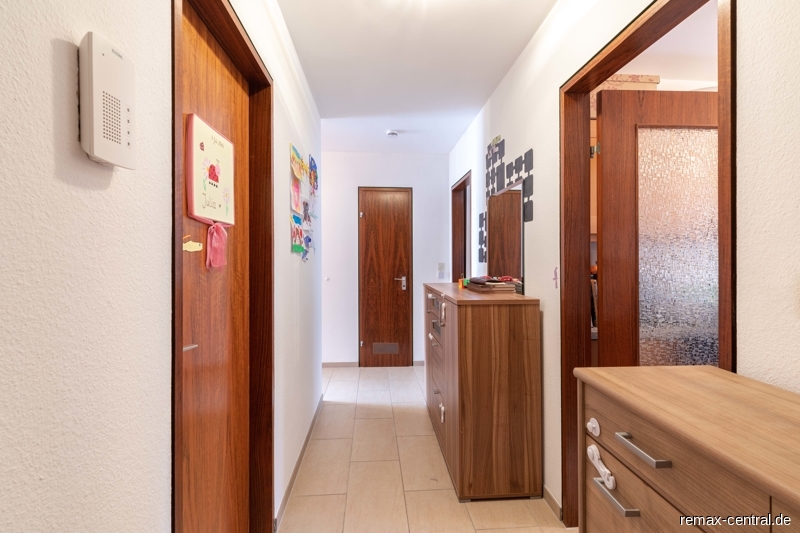 Die Wohnung im 1. OG bietet auf über 82 m² einen komfortabel geschnittenen Grundriss und hat den Zutritt über einen Laubengang.Durch einen Windfang gelangt man geschützt in den geräumigen Flur und in die Diele, welche viele Möglichkeiten für eine individuelle Gestaltung der Garderobe bieten.