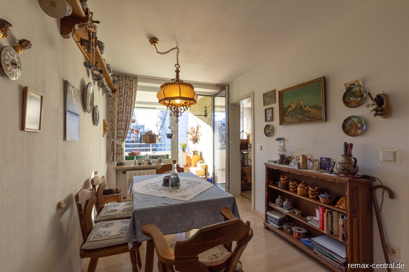 Die sonnige und windgeschützte Loggia ist sowohl vom großzügigen Wohnzimmer, als auch vom gemütlichen Essbereich aus erreichbar. Hier genießt man nachmittags und abends die Sonne oder auch gemütliche Mahlzeiten an der frischen Luft.