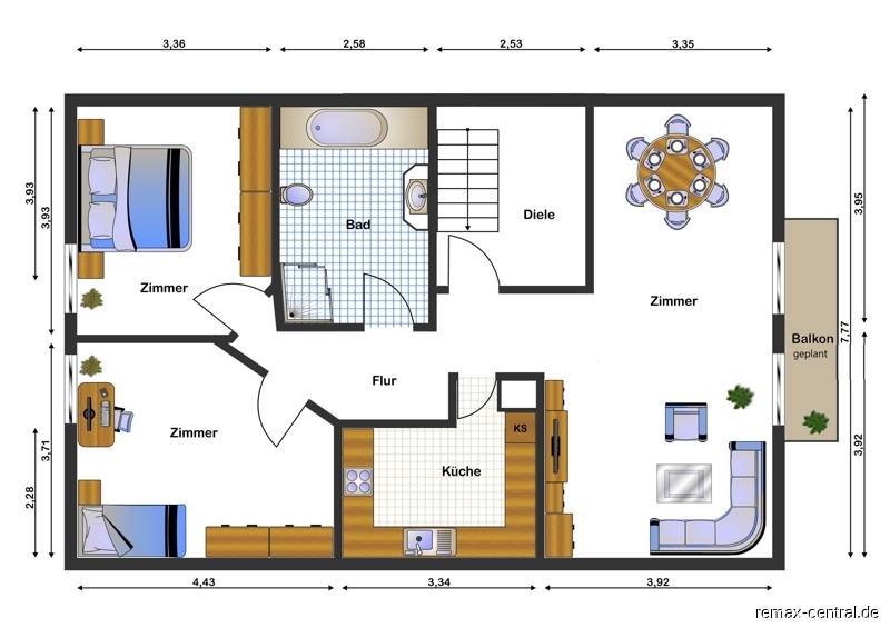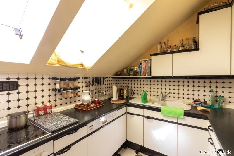 In der gemütlichen Dachgeschosswohnung gibt es drei Zimmern, die durch die Dachschrägen eine schöne Atmosphäre bilden. Die Einbauküche mit den zwei Fenstern und der halb offenen Wand zum Wohnzimmer verschafft Gemeinschaft, Spaß beim Kochen und ein Beisammensein. Das wunderschön renovierte Bad bietet neben dem Fenster auch eine tolle Badewanne an.