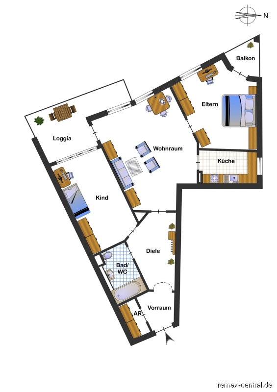 - Zwei Balkone (Ausrichtung Westen)- Fußboden Parkett