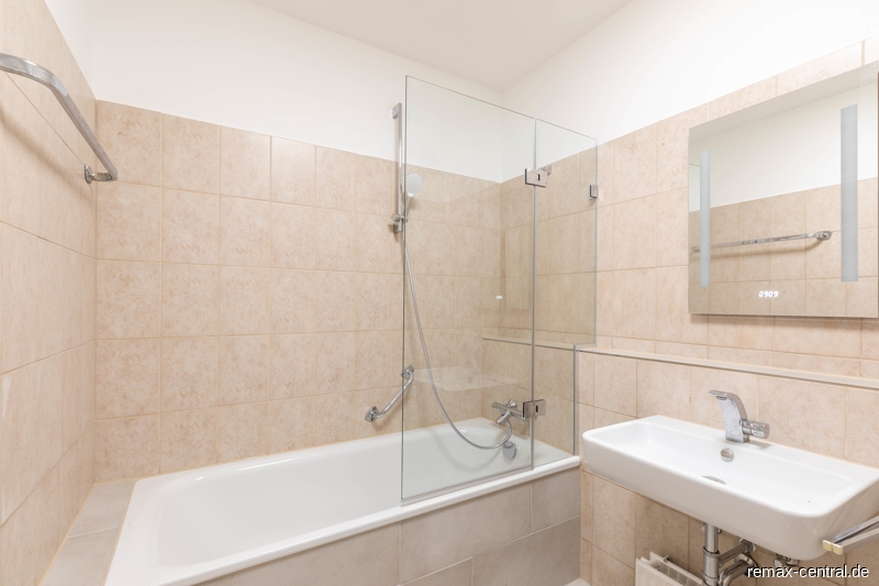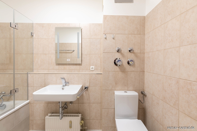 Das großzügig konzipierte Badezimmer hat Platz für eine Waschmaschine. Ein Anschluss dafür ist bereits vorhanden. Das Bad ist teilrenoviert, die hochwertige Badewanne, das WC und der Waschtisch sind neu ersetzt worden.
