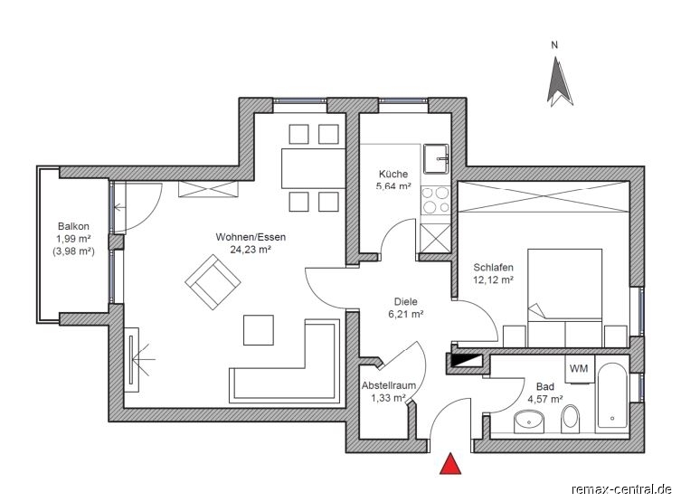- Einbauküche mit Elektro-Großgeräten- Balkon Westausrichtung