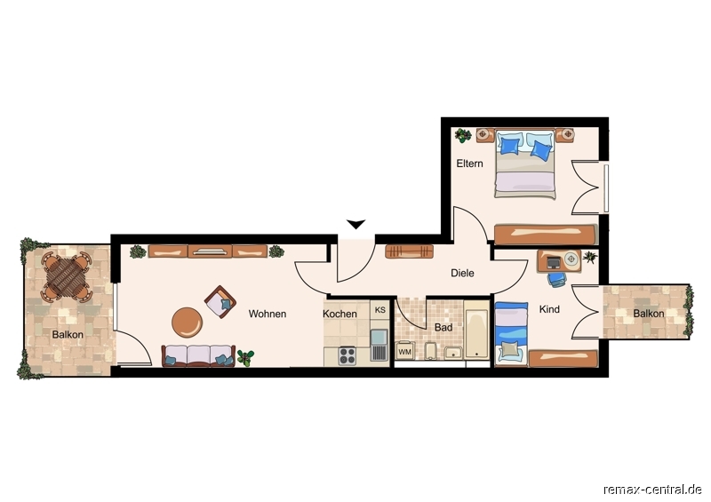- Zwei Balkone- Fußboden Stäbchenparkettboden