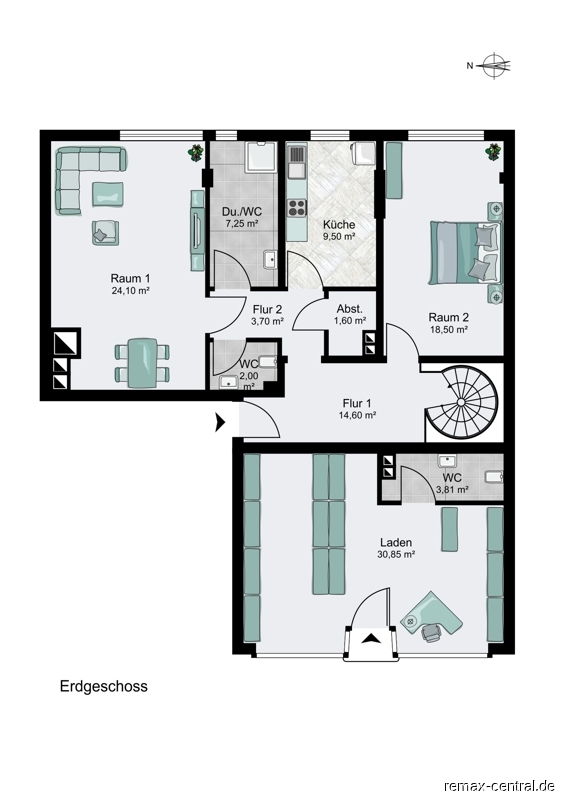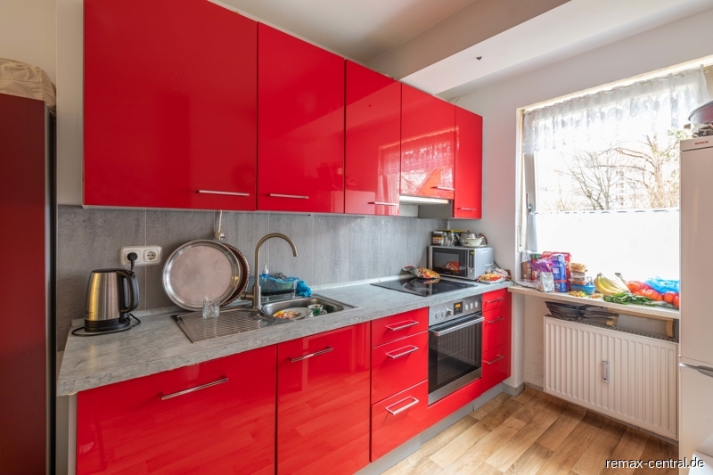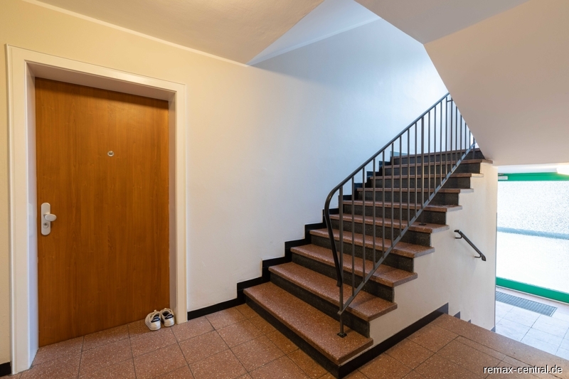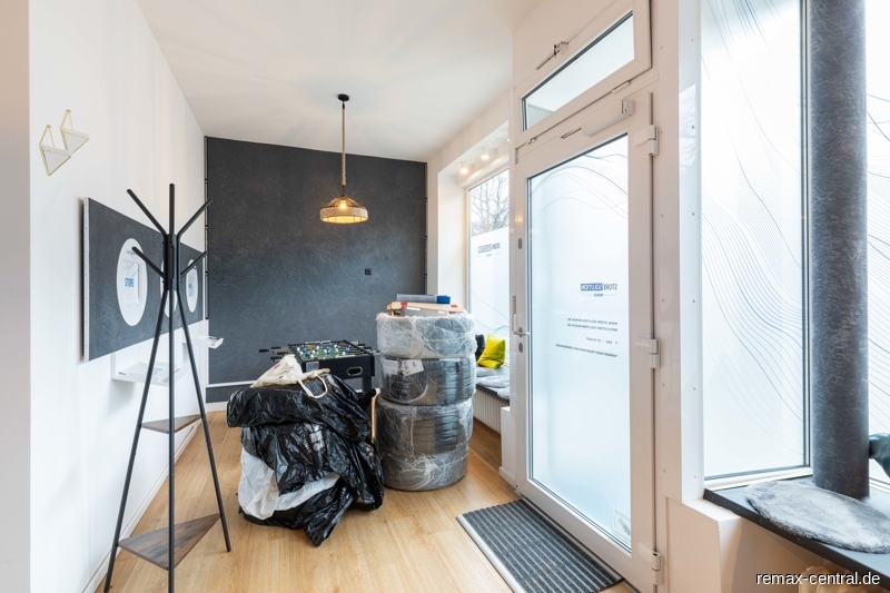 Das im Jahr 1962 errichtete Mehrfamilienhaus enthält auf sechs Stockwerke verteilt 24 Wohneinheiten.Die moderne Ladenfläche mit Terrasse und Nutzfläche von 35 m² sowie die gepflegte Maisonetten-Wohnung mit ihren knapp 95 m² befinden sich direkt im Erdgeschoss. Durch das Betreten der Wohnung landet man in der großzügigen Diele. Das Wohnzimmer und das Schlafzimmer im EG werden durch große Fenster belichtet und sind lichtdurchflutet. Ebenso befindet sich im Badezimmer ein kleines Fenster, was für Licht und Durchlüftung sorgt. Neben dem Bad bietet die Wohnung ein modernes, separates WC an. Die rote und schöne Einbauküche veranlasst mit ihrem Glanz nicht nur für Eleganz, sondern auch das Kochen bereitet mit dem Küchenfenster mehr Spaß. Am Ende des Ganges führt eine Wendeltreppe runter zu einem Hobbyraum, welches als Arbeitszimmer oder als ein Kinderzimmer genutzt werden kann. Für mehr Platz für Vorrat und für Stauraum sorgt eine große Abstellkammer.
