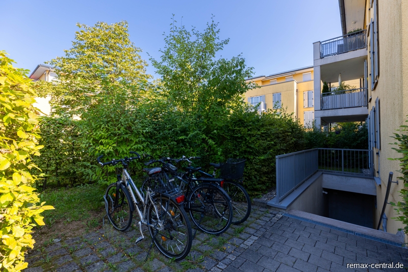 Die großzügige Terrasse erstreckt sich über ca. 14 Quadratmeter und bietet eine ruhige Oase in südwestlicher Ausrichtung. Geschützt durch eine elektrische Markise wird dieser Raum zur Verlängerung Ihres Wohnbereichs im Freien.