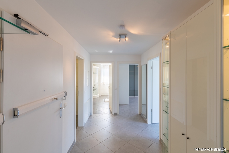 Die Wohnung ist mit Liebe zum Detail gestaltet. Maßgefertigte Einbauschränke, darunter im Schlafzimmer und im Hauswirtschaftsraum, bieten eine optimale Raumnutzung. Der hochwertige viertürige Eckschiebetürenschrank im Schlafzimmer stellt eine raffinierte Lösung für Ihre Aufbewahrungsbedürfnisse dar.