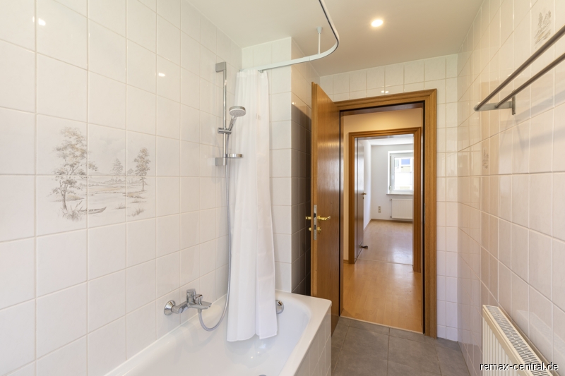 - Laminatboden- weiß gefliestes Bad